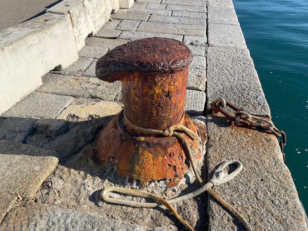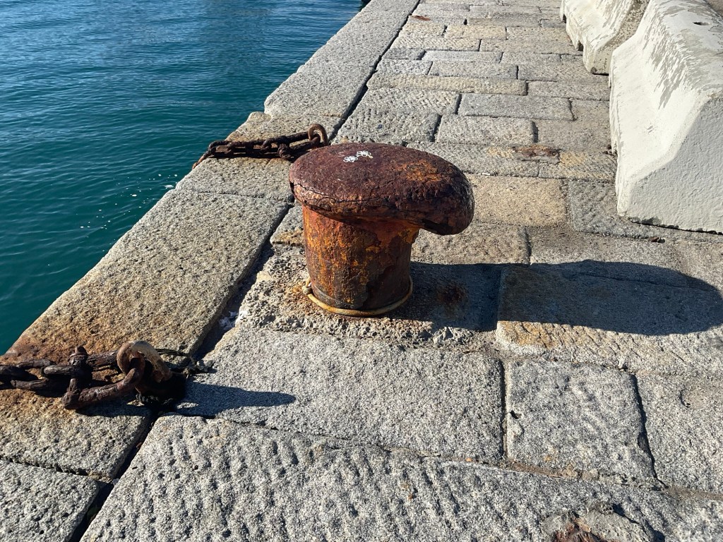 Le bitte rappresentano la stabilità della terra, il punto dove la nave trova la sua sicurezza e trova riparo dagli elementi mutevoli del mare e del vento.
